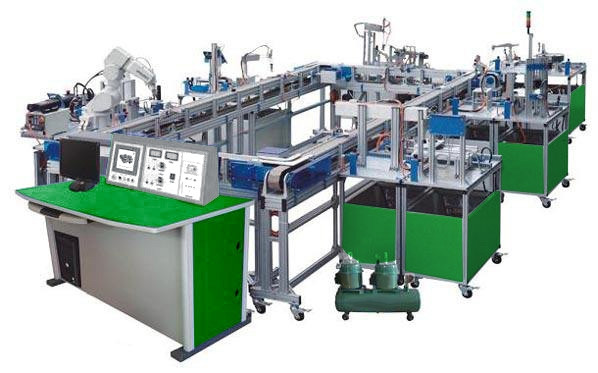 該系統可配置機械傳動裝置上料,四軸機器人模擬搬運,六軸機器人模擬裝配,機器視覺定位引導,直角坐標機器人碼垛產品,各工作站間通過中間循環過渡輸送線體連通,多種工業機器人協同作業,共同完成了產品的整個生產過程。該教學實訓系統的每個工作站既能獨立完成特定的功能訓練,又能連成一條完整的生產線作為系統集成應用訓練,集成了PLC編程技術、氣動技術、傳感視覺技術、伺服技術、變頻器技術、工業機器人技術、現場總線技術、電機控制技術、機械傳動技術等,可再現柔性自動化生產的整套工藝流程。